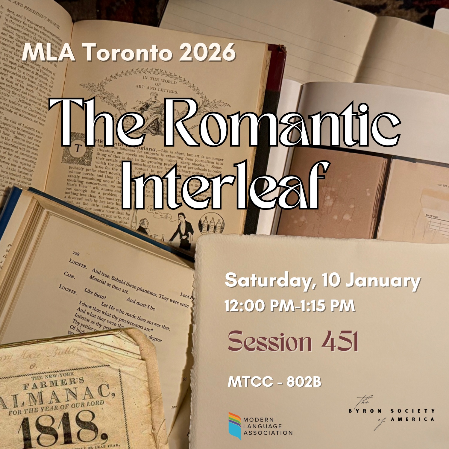 The Byron Society of America is looking forward to the MLA’s 2026 convention in Toronto where we will feature a distinctive roundtable session that examines a fascinating—yet often overlooked—aspect of nineteenth-century book culture: the practice of interleaving. Presided over by Ruth Abbott of the University of Cambridge, “The Romantic Interleaf” brings together six scholars to explore the transformation of texts from fixed publications into evolving records by unbinding, rebinding, or tipping in leaves through other means.